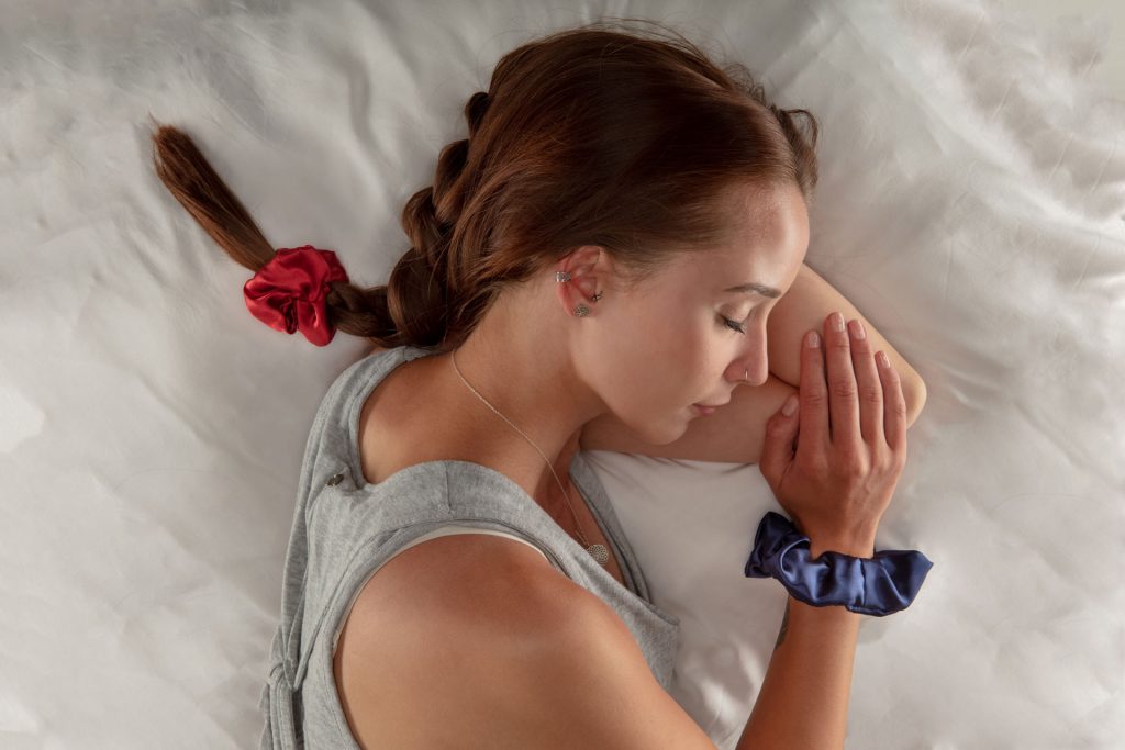 A healthy and gentle way to wear your hair is to use our scrunchies. The two main components of silk, Fibroin and Sericin, make silk so much smoother and sleeker than other fabrics. Those proteins in our scrunchies protect your hair from breaking and roughening when wearing a bun. You can reduce hair breakage and split ends by using our scrunchies. Your hair also becomes a lot shinier.